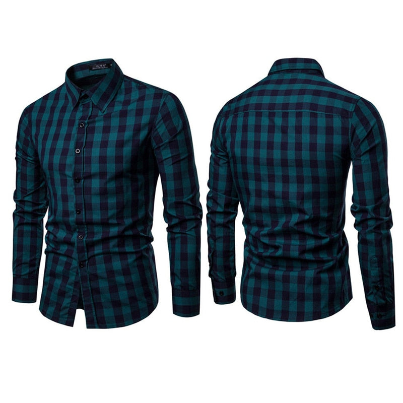 • Load image into Gallery viewer, Classic Casual Men's Button Down Slim Fit Long Sleeved Dress Business Shirts Tops Modern S-2XL Slim Plaid Blouse Musle Shape
