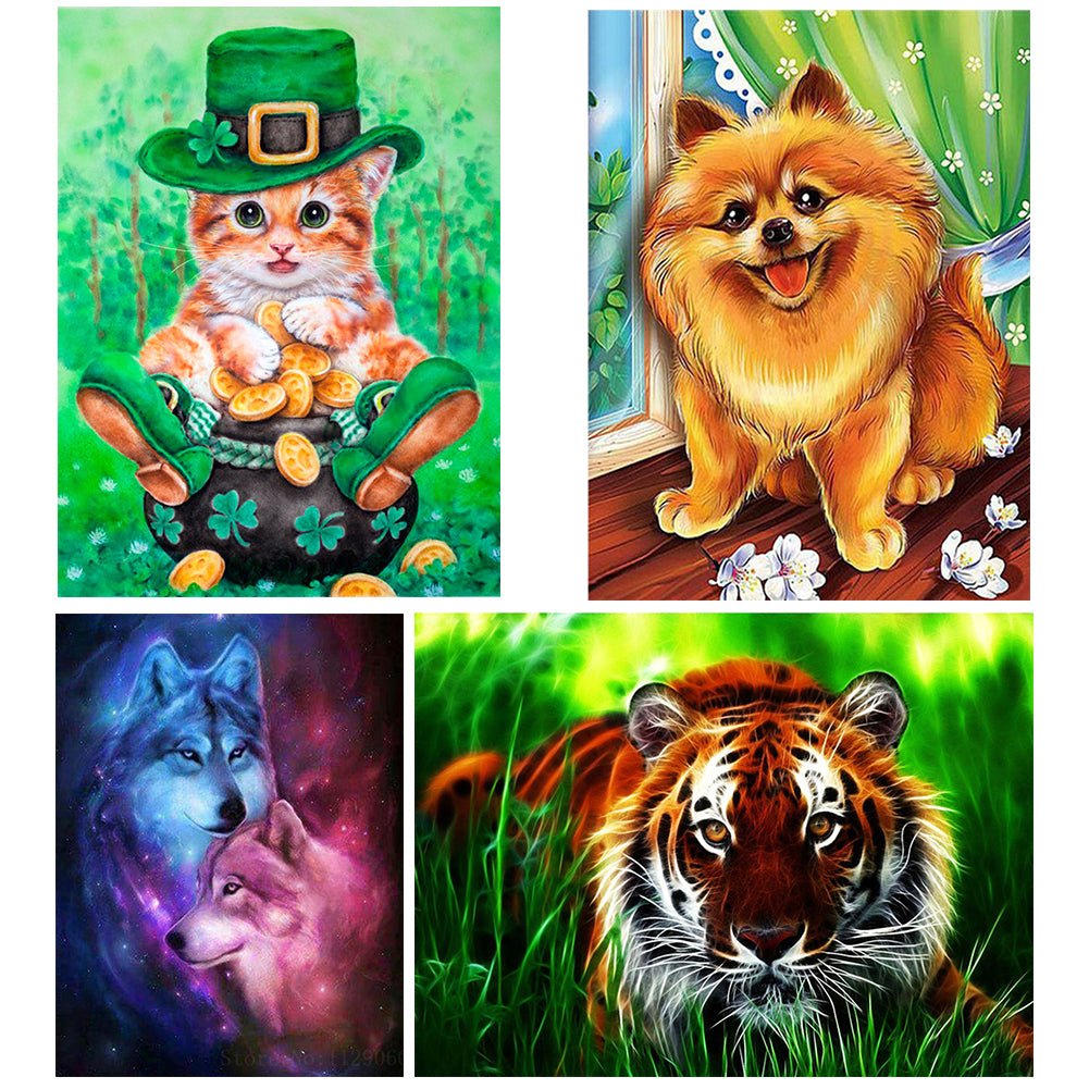 Cute Animals Dog Lion Cat Cross Stitch DIY Resin Diamond Painting Home Decor