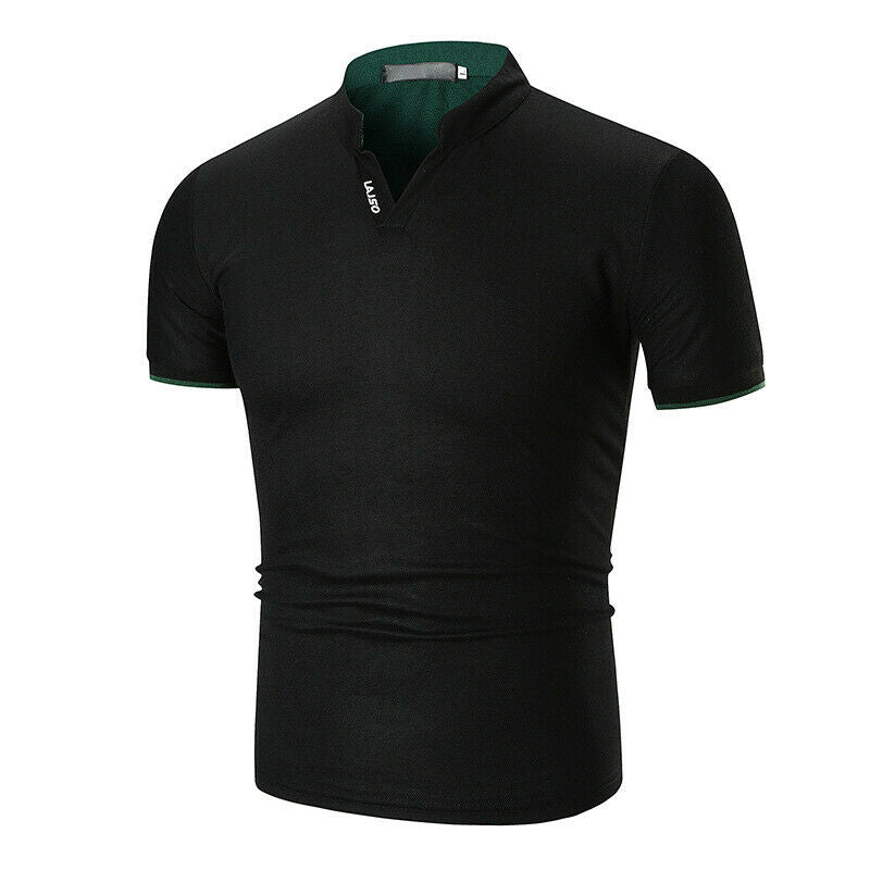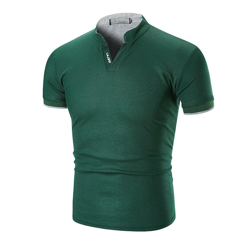 Hot Mens Shirt Solid Cotton Slim Fit Short Sleeve V-Neck Casual Summer Top Muscle Casual Male Summer Fashion Shirt Basic Tee