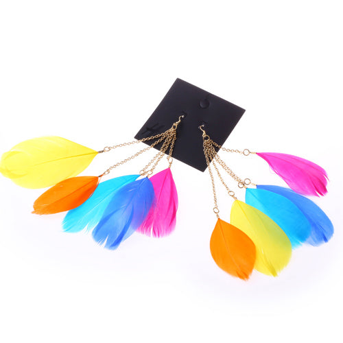 • Load image into Gallery viewer, Lady Bohemian Contrast Color Handmade Feather Long Dangle Eardrops Hook Earrings