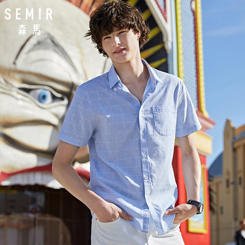 SEMIR Short Sleeve Shirt Men Teen Summer New Solid Color Shirt Korean Men's Cotton Shirt Short Sleeve Casual