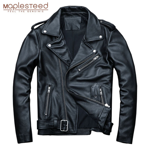 MAPLESTEED Classical Motocycle Jackets Men Leather Jacket 100% Natural Calf Skin Thick Moto Jacket Man Biker Coat Winter M192