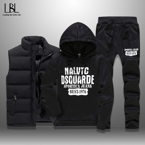 Men's Winter Tracksuits Casual Sportswear Sweatshirts Mens Set 3 Pieces Warm Vest Sweatpants Hoodie Letter Printed Plus Size 5XL