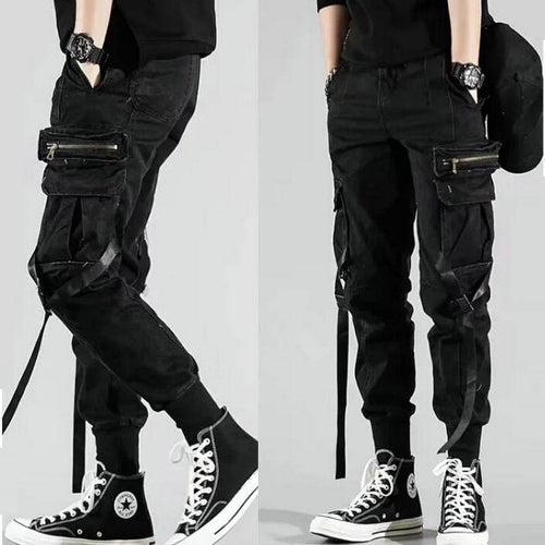 Men's Side Pockets Harem Pants 2020 Autumn Hip Hop Casual Ribbons Design Male Joggers Trousers Fashion Streetwear Pant Black