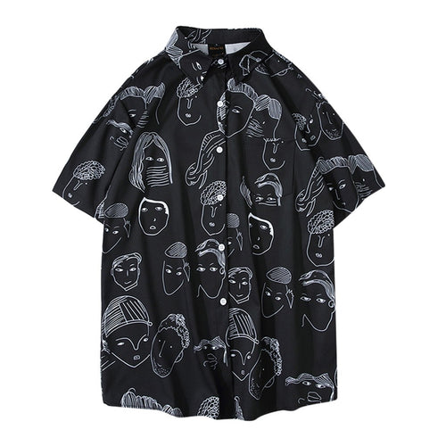 Hot Fashion Summer Men Cartoon Print Turn-Down Collar Loose Short Sleeve Shirt Blouse Men Shirt 2019 Summer New Arrivals