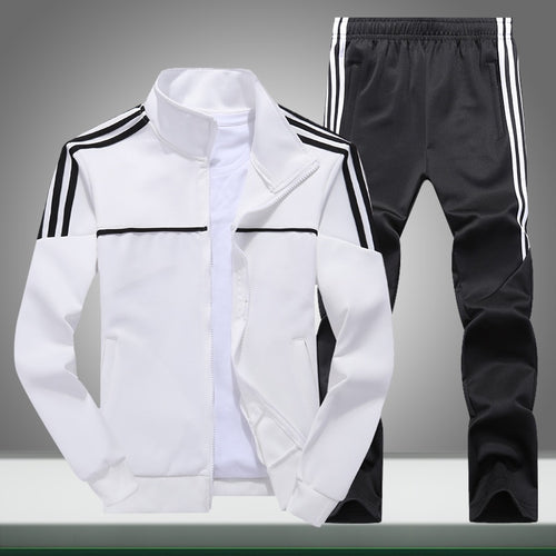 Otoño nuevo chándal para hombre Casual sólido rayas cremallera conjuntos de dos piezas chaquetas + Pantalones 2020 ropa deportiva masculina trajes deportivos prendas de vestir